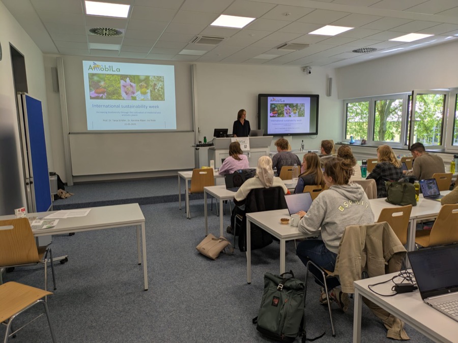Im Rahmen der South Westphalia International Sustainability Week an der Fachhochschule Südwestfalen präsentierte das Projekt AmobiLa am Donnerstag ein innovatives Lehrformat zum Thema „Biodiversität im Arzneipflanzenanbau“. In einer gezielten Unterrichtseinheit zu Arzneipflanzen und deren Beitrag zur Biodiversität konnte AmobiLa ein europäisches Fachpublikum begeistern – und wichtige Impulse für die nachhaltige Landwirtschaft von morgen setzen.