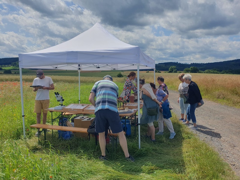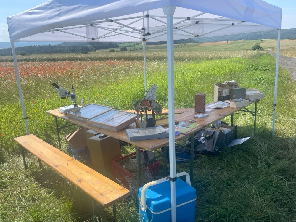 Am 28. Juni 2024 war das Projekt AmobiLa zu Gast im malerischen Mohndorf Germerode, um die einzigartige Mohnblüte in einer besonderen Aktion mit Themen rund um Biodiversität und Bestäubung zu bereichern. Unter dem strahlend blauen Himmel der Region Hoher Meißner, inmitten der leuchtenden rosa Mohnfelder, wurde für einen Tag ein Pavillon direkt auf den Feldern aufgebaut, der zahlreiche interessierte Besucher anzog.